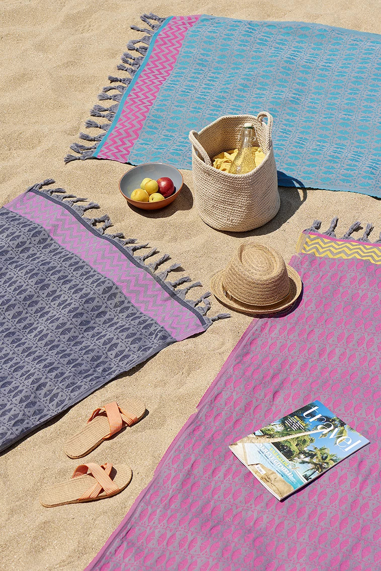 3rd Culture bags are designed to accompany you both at the beach and in your daily life. With a special compartment on the front, you can easily carry your towel or yoga mat. The large interior pocket offers a practical space for your laptop and personal items. Made of 100% cotton fabric, the front of the bag features a woven zigzag motif symbolizing water. Each bag is named after the different winds of the Mediterranean.