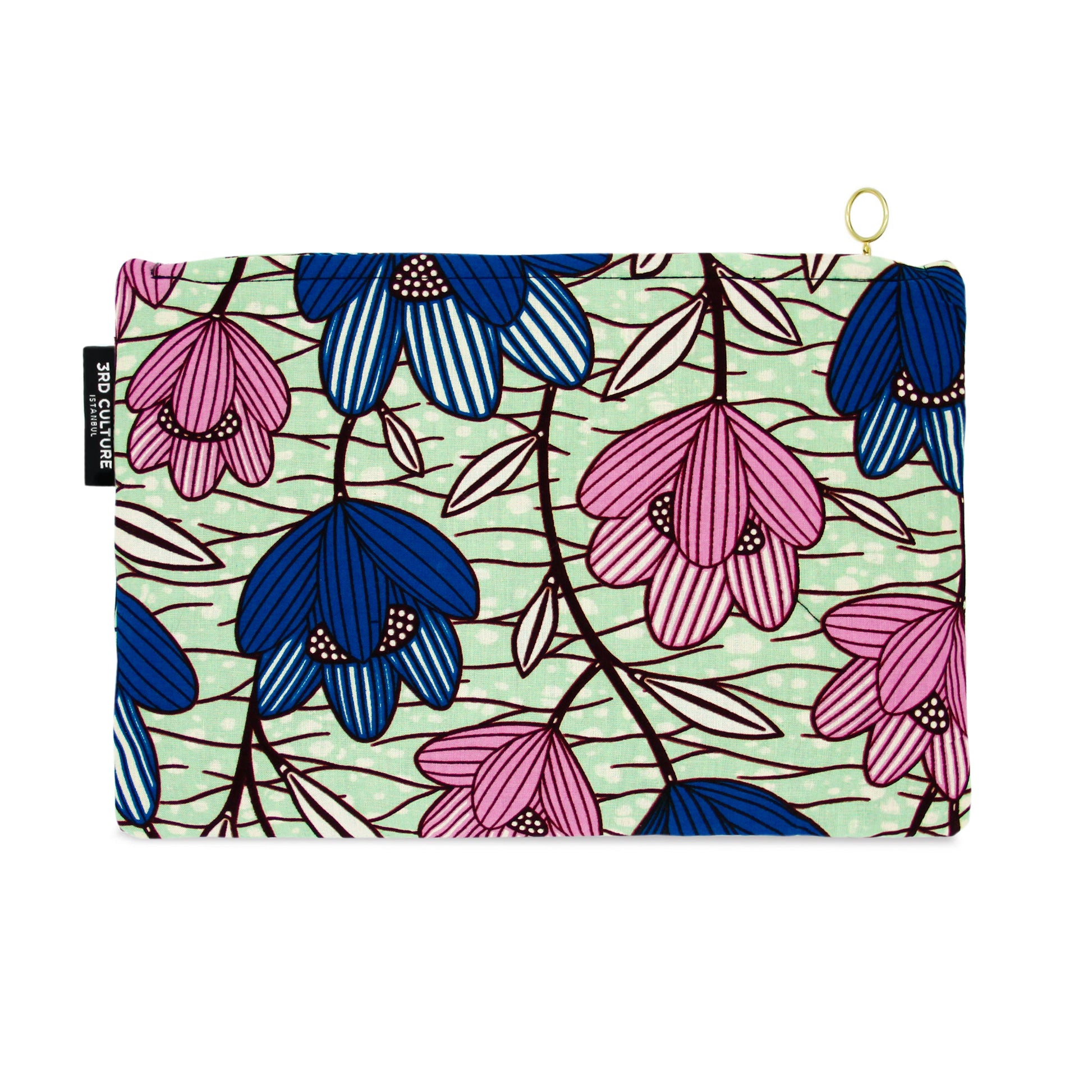 3rd Culture clutches are handmade in Istanbul with 100% cotton West African fabric on both sides, and are lined with thick cotton fabric. Due to the unique nature of the fabric, shown image may vary slightly from actual product.