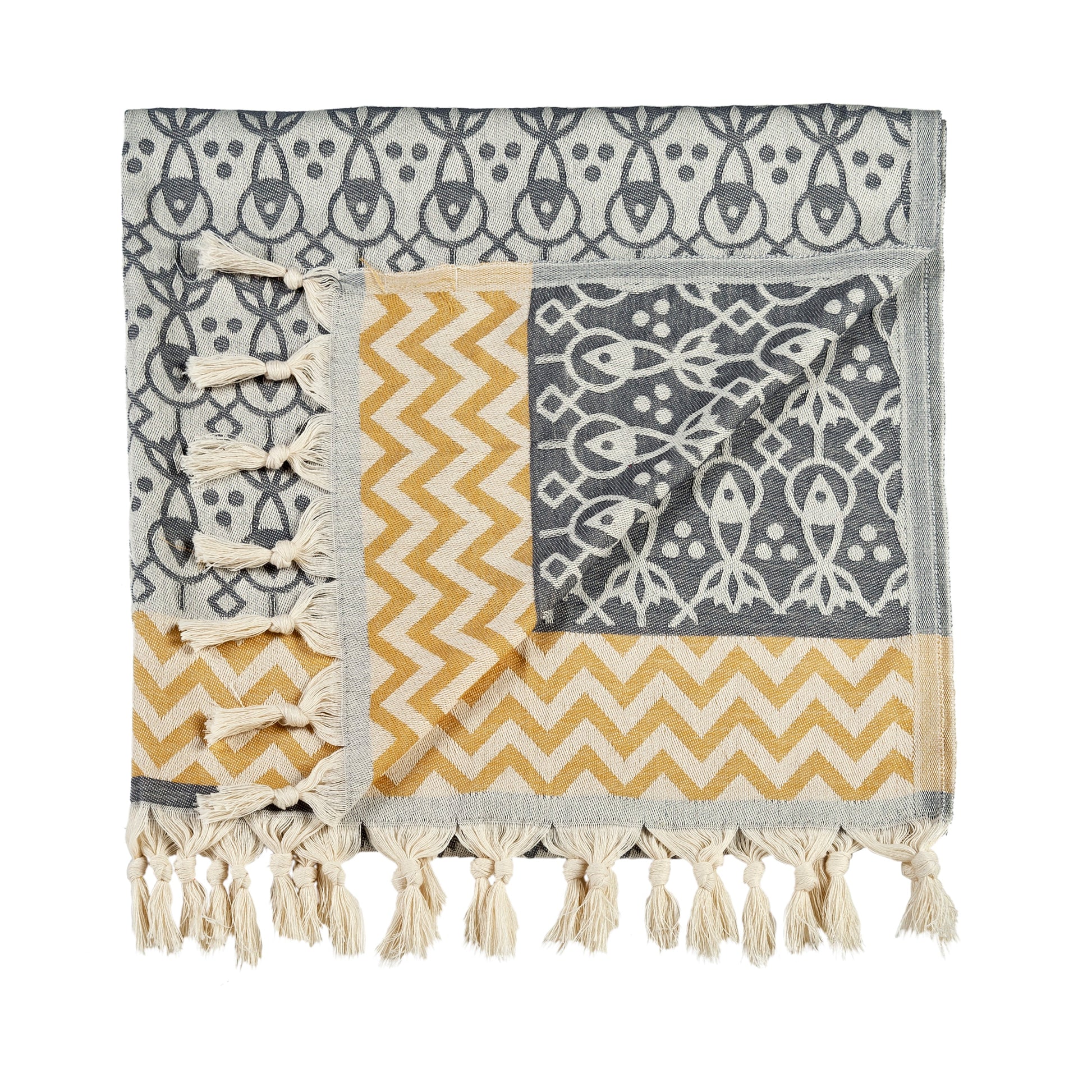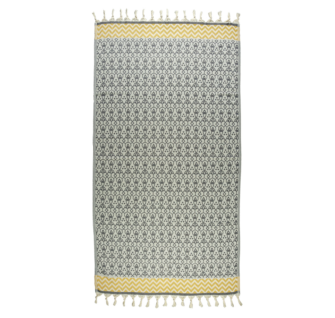 Featuring a motif that merges a fish with a lotus flower, the Mahi towel is a tribute to the life-giving properties of water. Lotus flowers are sacred in Hinduism, where they are seen as a symbol of beauty and fertility, while also representing purity and spiritual enlightenment in Buddhism. The fish, an indispensable part of Istanbul's identity, marks the importance of the Bosphorus in the spirit of the city. Our 100% cotton peshtemals are highly absorbent, light and dry very quickly. They are ideal for travelling, as well as use at home or by the pool.