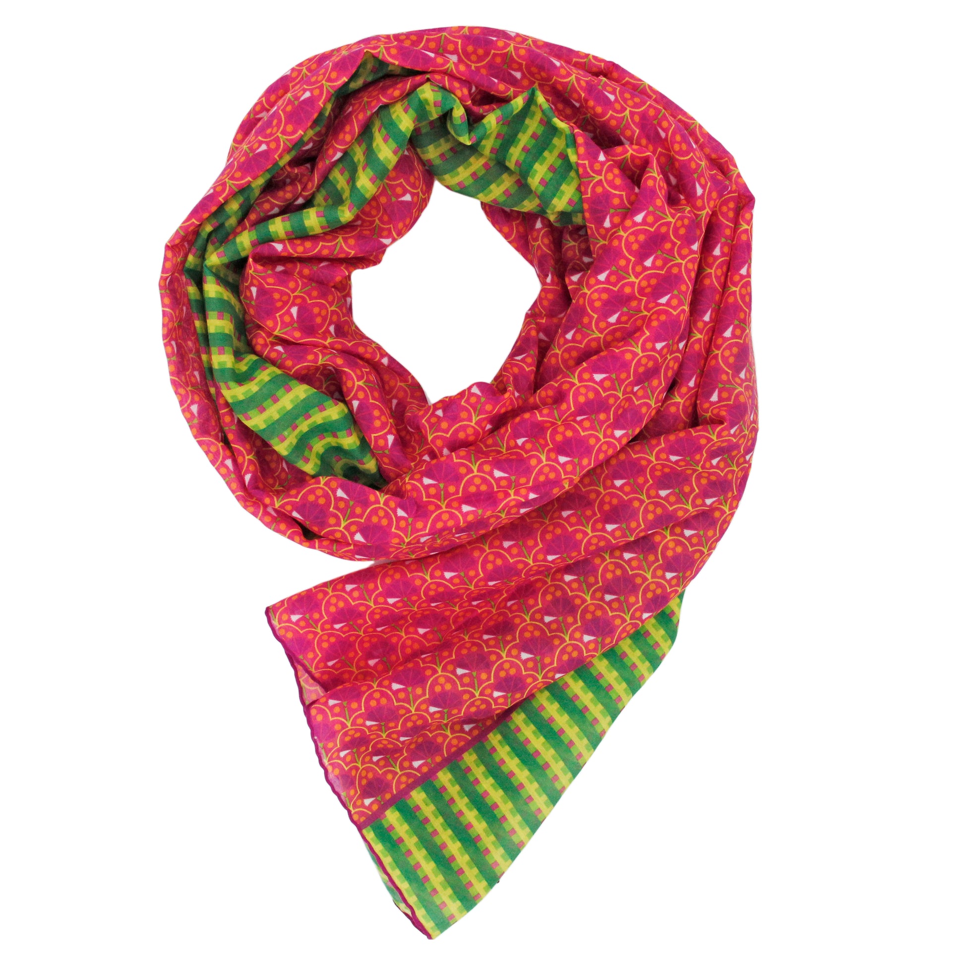The scarves and bandanas are printed with unique patterns created by our in-house designer to celebrate the beauty and strength that rises from cultural diversity. The floral motif of the 'Jaipur' pattern is a modern interpretation of the carnation flower typical of Iznik pottery in Turkey, whereas the lattice was inspired by the beautiful stonework of the Rose Gate of Jaipur’s City Palace in India.